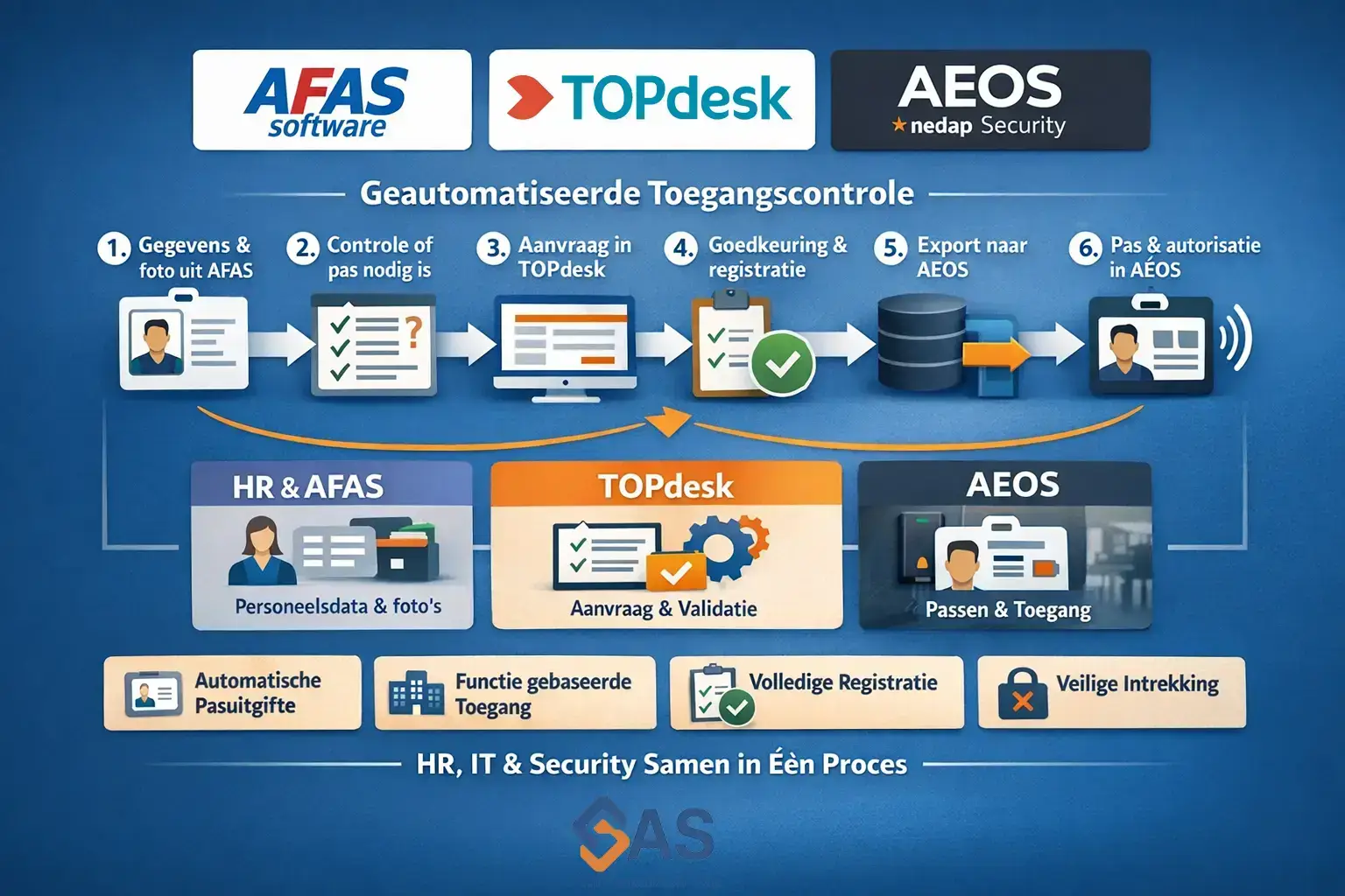 AEOS, TOPdesk en AFAS: één keten voor fysieke toegang.